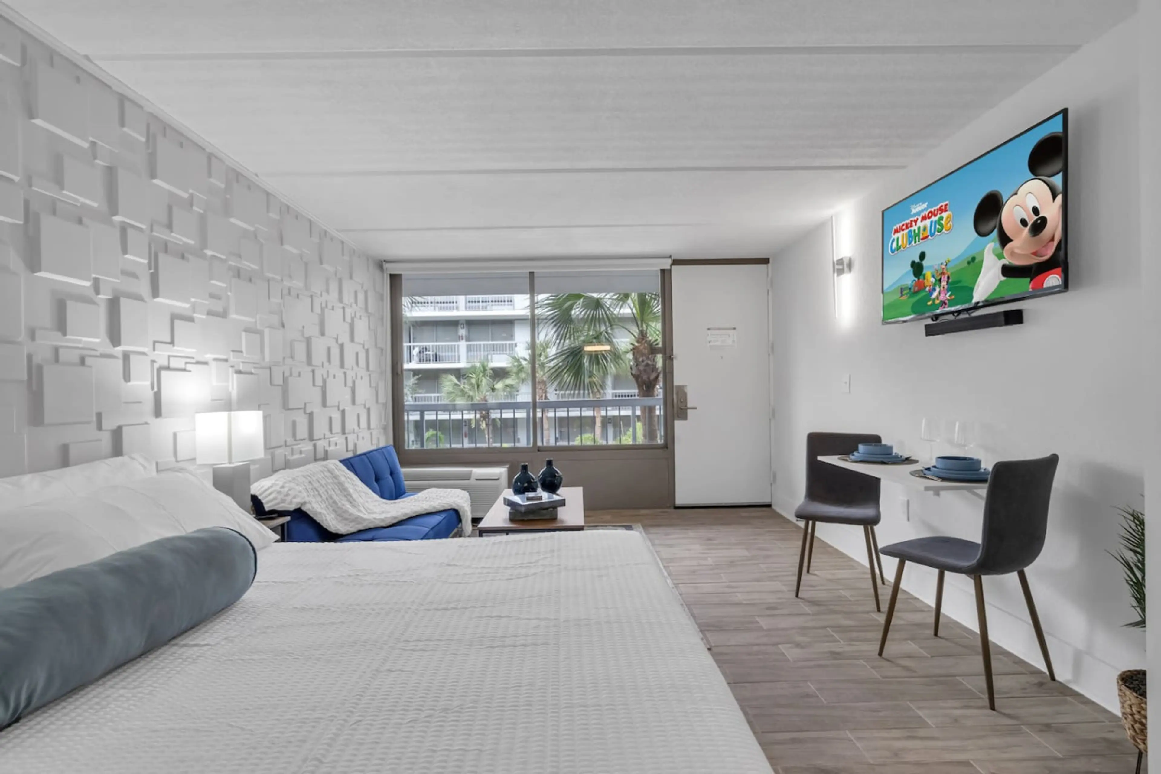 Experience luxury at our modern studio in Kissimmee, 8 minutes from Disney parks. This hotel-like space features a king-size bed, smart TV, full kitchen, and fast Wi-Fi, ideal for short or long stays. Guests enjoy a pool pavilion with BBQ area, playground, gym, and exclusive access to a golf park. T...