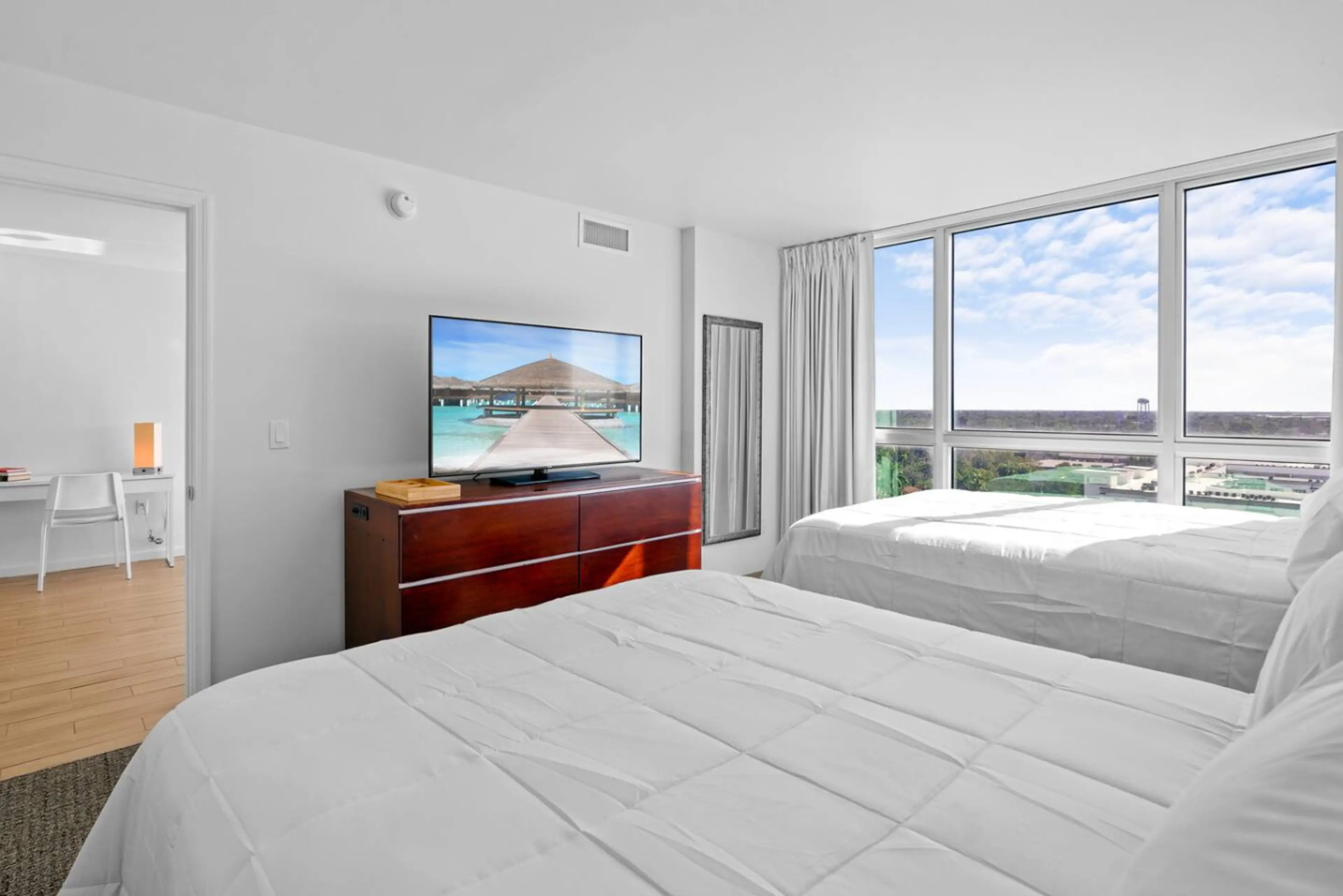 Waterfront luxury in the River District! 🌊 Enjoy spectacular river views, 2 Queen beds, and a practical sofa bed. πŸ›‹οΈ Features a granite kitchen and spa-style bath. Relax in the resort pool, private cinema, or play billiards and ping-pong. 🎱🎬 Unbeatable location steps from Fort Myers' best dining...