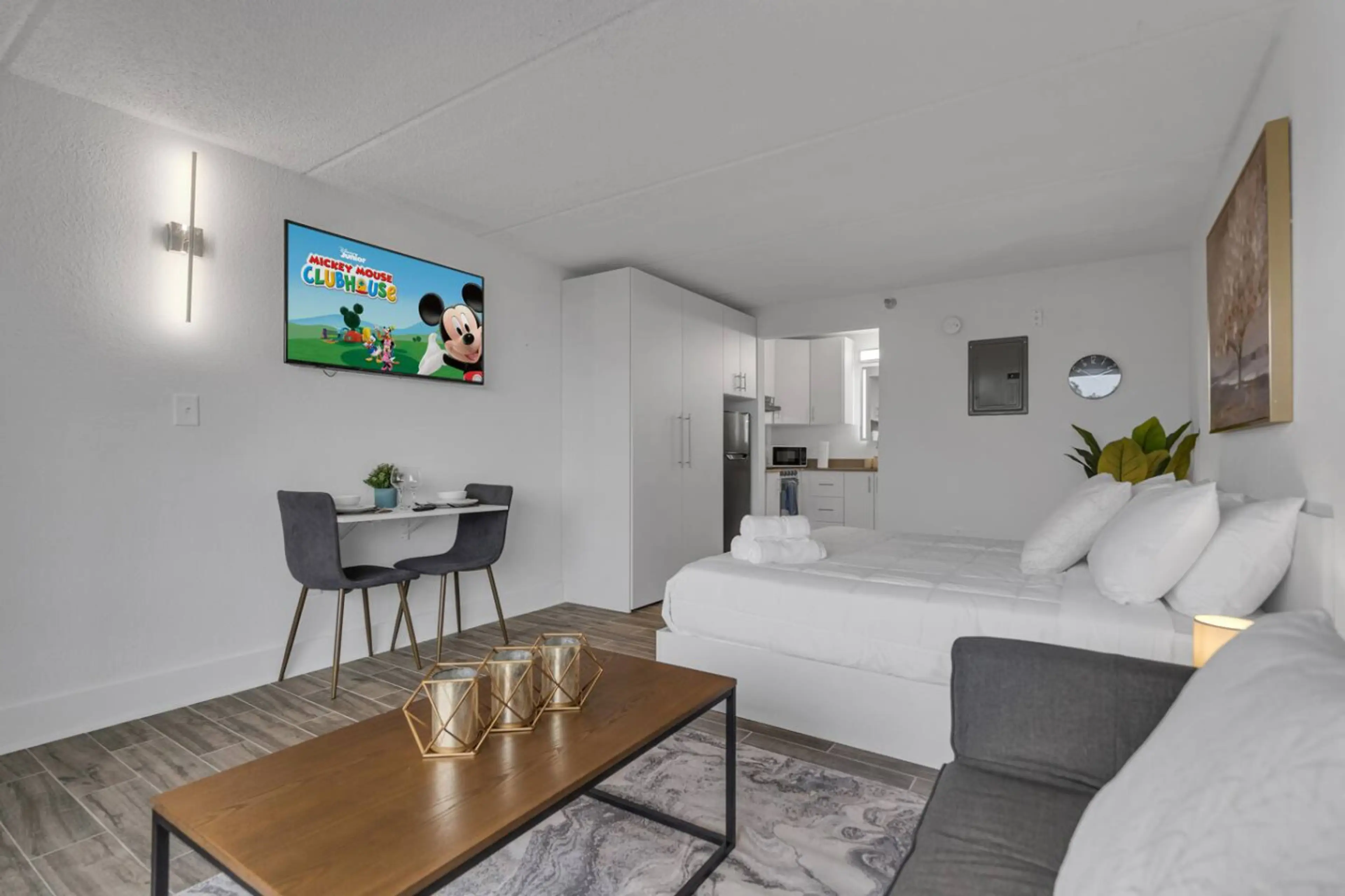 Experience luxury at our modern studio in Kissimmee, 8 minutes from Disney parks. This hotel-like space features a king-size bed, smart TV, full kitchen, and fast Wi-Fi, ideal for short or long stays. Guests enjoy a pool pavilion with BBQ area, playground, gym, and exclusive access to a golf park. T...